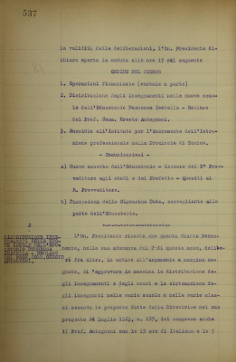 Distribuzione degli insegnamenti alle nuove scuole dell'EDI. Reclamo del prof. Oreste Antognoni