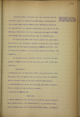 Comunicazioni: a) nuovo assetto dell'EDI. Lettere del Regio Provveditore agli studi e del Prefetto. Quesiti al Regio Provveditore; b) dimissioni della signora Data, sorvegliante alle porte dell'EDI