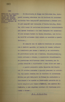 Comitato di assistenza civile pro emigranti in Modane sotto gli auspici del Consolato Italiano. Domanda di sussidio