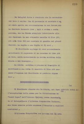 Comunicazioni: a) prospetto delle assenze del personale nel mese di settembre 1923; b) ratifica di sussidio d'urgenza a Doro Salvatore, guidatore-meccanico dei furgoni automobili del nostro Monte di pietà; c) servizio buoni legna