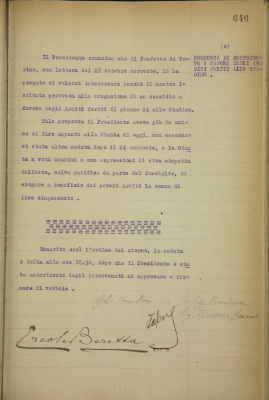 Comunicazioni: a) ringraziamenti di S.M. il re per gli auguri alle principesse Mafalda e Giovanna; b) servizio buoni pane; c) proposta di contributo a favore degli Arditi feriti allo Stadium