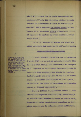 Ospedale Maggiore di San Giovanni Battista. Domanda di ulteriore contributo per fondare una sezione chirurgica radiologica a favore dei cancerosi poveri e disagiati