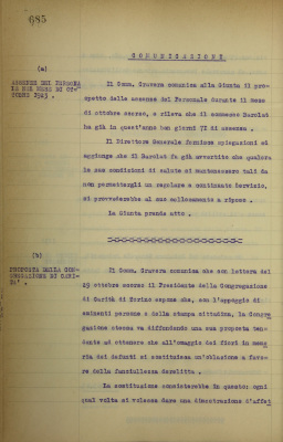 Comunicazioni: a) assenze del personale nel mese di ottobre 1923; b) proposta della Congregazione di carità