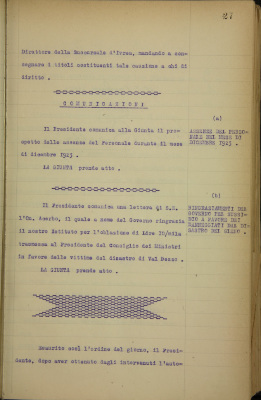 Comunicazioni: a) assenze del personale nel mese di dicembre 1923; b) ringraziamenti del Governo per il sussidio a favore dei danneggiati dal disastro di Gleno