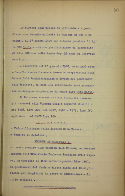 Teresa Gola, ex maestra dell'EDI. Domanda di sussidio