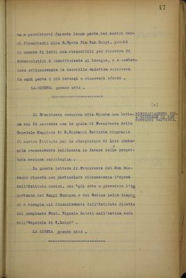 c) ringraziamento dell'Ospedale di San Giovanni Battista;