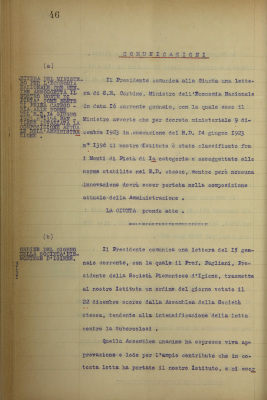 a) lettera del Ministero per l'Economia nazionale che, mentre assoggetta il nostro Monte di pietà come Monte di 1° categoria, alle norme del R.D. 14 giugno 1923 n. 1396, mantiene invariata la composizione attuale dell'Amministrazione;