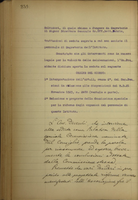 Interpretazione dell'art. 11, comma secondo del Regolamento pensioni in relazione alle disposizioni del R.D. 21 novembre 1923, n. 2480; relazione e proposte della Commissione speciale per la riforma degli organici del personale di questo Istituto