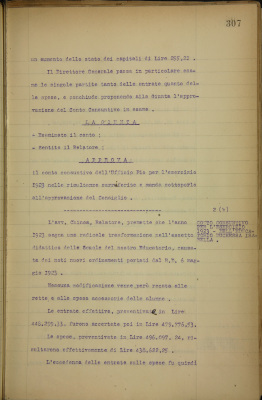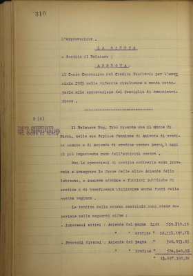 Conti consuntivi per l'esercizio 1923: a) Ufficio Pio; b) dell'EDI; c) del Credito fondiario; d) del Monte di pietà