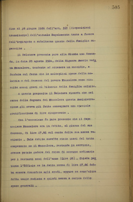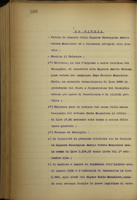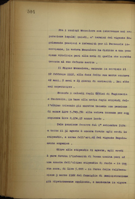 Amerio Giuseppina vedova del compianto capo usciere Moncalero Carlo. Liquidazione di pensione e domanda di sussidio