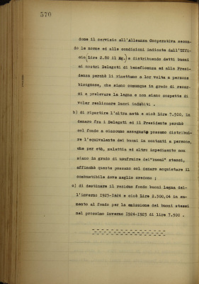 b) servizio buoni legna per l'inverno 1924-25;
