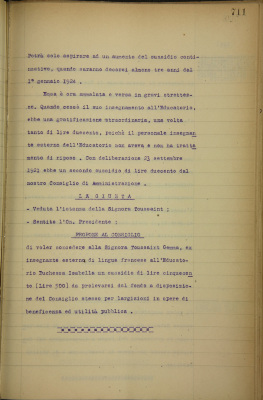 Toussaint Gemma, ex insegnante esterna di francese dell'EDI. Domanda di sussidio