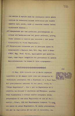 Apertura di concorso interno per esami a tre posti di primo segretario negli uffici contabili