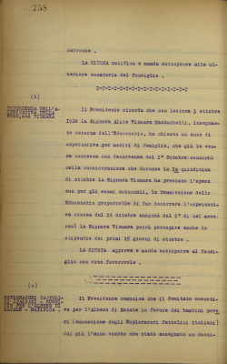 Comunicazioni: a) EDI. Sostituzione e nomina degli insegnanti. Ratifica; b) decorrenza dell'aspettativa della professoressa Vismara; c) Esploratori Cattolici Italiani, sussidio per l'albero di Natale. Ratifica