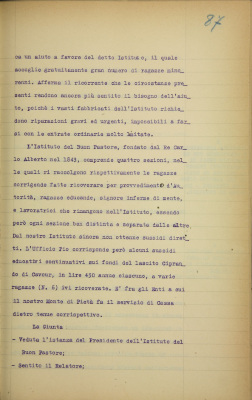 Istituto del Buon Pastore. Domanda di sussidio