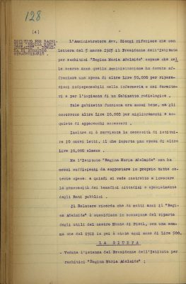 Istituto per Rachitici Regina Maria Adelaide. Domanda di sussidio straordinario