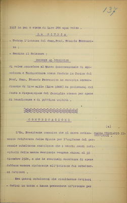 Museo Internazionale di apicoltura e bachicoltura «Edoardo Perroncito». Domanda di sussidio straordinario