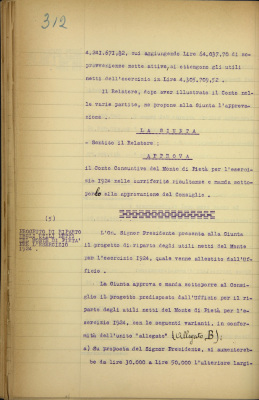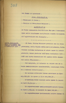 Conti consuntivi per l'esercizio 1924: a) Ufficio pio; b) EDI; c) Credito fondiario; d) Monte di pietà