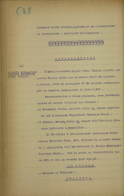 Comunicazioni: a) sussidi scolastici, domande pervenute fuori termine; b) assenze del personale nel mese di ottobre 1925; c) dimissioni della maestra interna Martino dell'EDI e sua sostituzione con la maestra Poncini