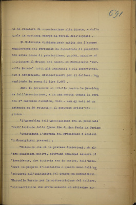 Rifiuto da parte della presidenza dell'Associazione fra il personale ad iniziare la sottoscrizione per il dollaro