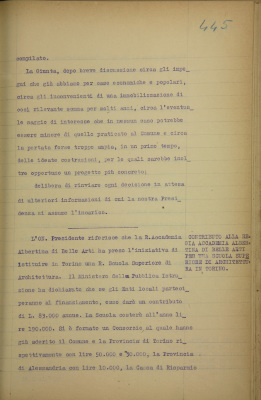Contributi diversi: alla Regia Accademia Albertina di Belle Arti per una scuola superiore di architettura in Torino; Fondazione Diaz per i ciechi di guerra; associazione ex granatieri di Sardegna per una lapide; Comitato Zootecnico provinciale di Cuneo per una pubblicazione; Lotteria pro Unione Italiana Ciechi, ratifica; Comitato gare pro Balilla e Piccole italiane, ratifica; Associazione Pro Torino per un corso serale di agraria; alla Regia Opera di Maternità, domanda di variazione di destinazione di contributo; domanda sovvenzione Bollettino Francescano