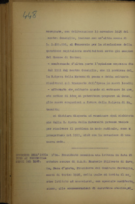 Regia opera di maternità di Torino. Variazione di destinazione di contributo