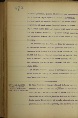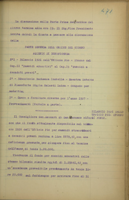 Parte II - Aziende di beneficenza Bilancio 1926 dell'Ufficio pio. Storino di fondi