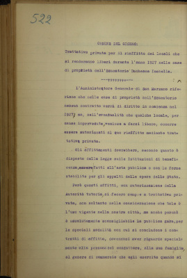 EDI. Trattativa privata per il riaffitto dei locali che si rendessero liberi nel 1927 nelle case di proprietà dell'EDI