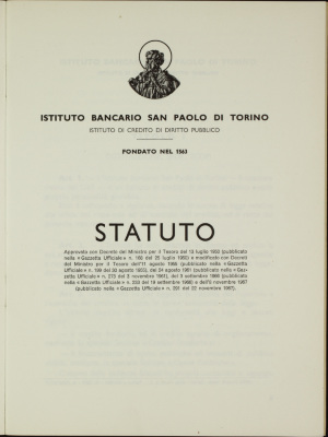 Statuto 1967 dell'Istituto Bancario San Paolo di Torino