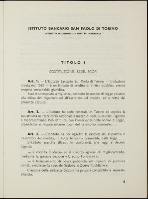 Statuto 1974 dell'Istituto Bancario San Paolo di Torino (copia a stampa)