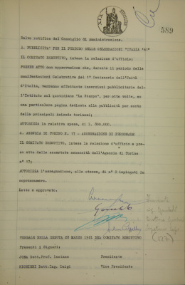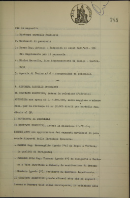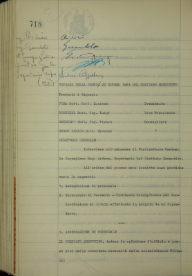 Verbali del Comitato esecutivo - Affari generali e riservati
