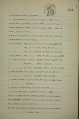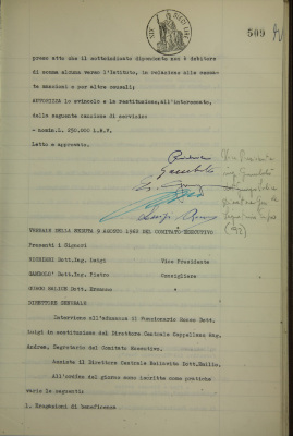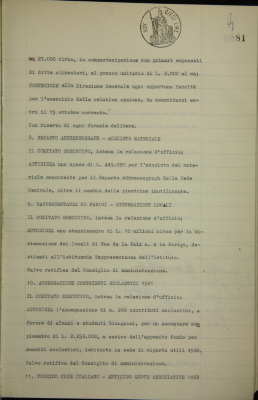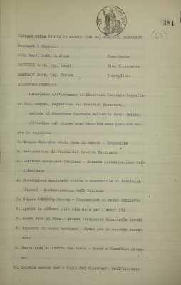 Verbali del Comitato esecutivo - Affari generali e riservati