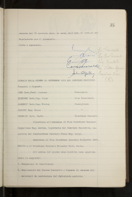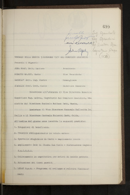 Verbali del Comitato esecutivo - Affari generali e riservati