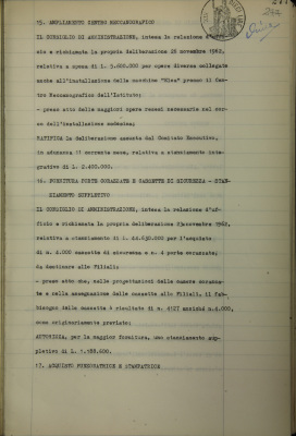 Verbali del Consiglio d'Amministrazione Affari generali e riservati