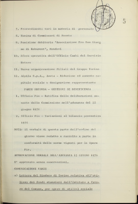 Verbali del Consiglio d'Amministrazione