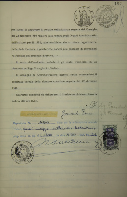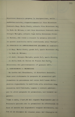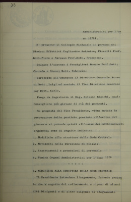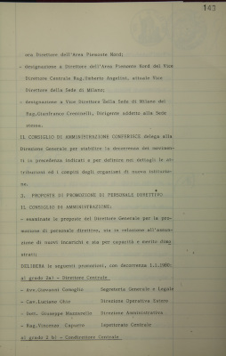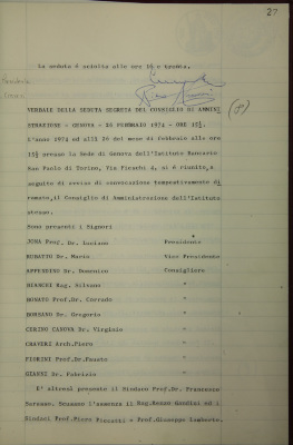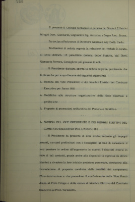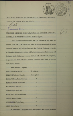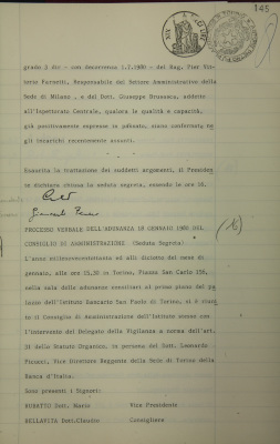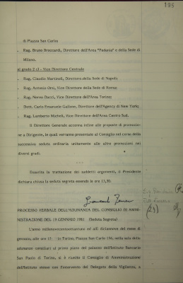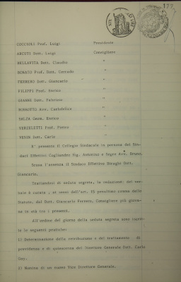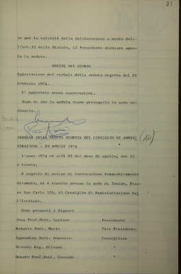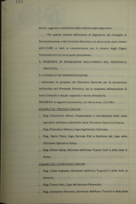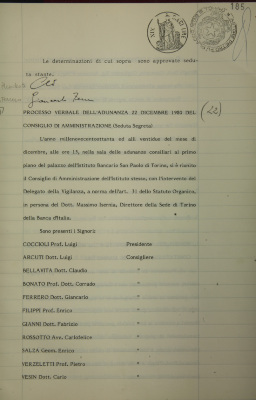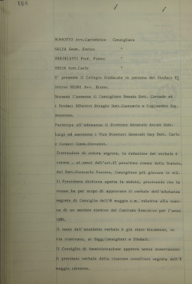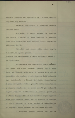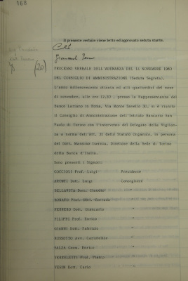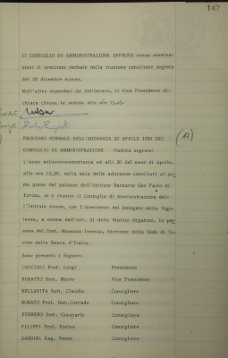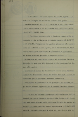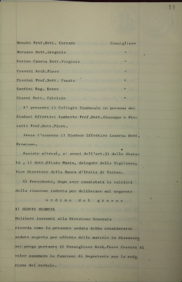 Verbali del Consiglio d'Amministrazione - Sedute segrete
