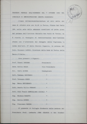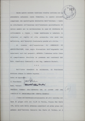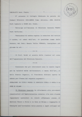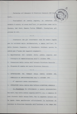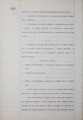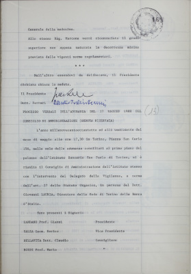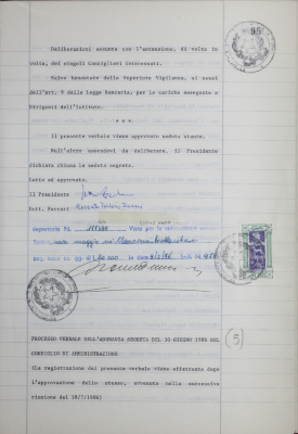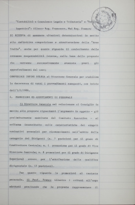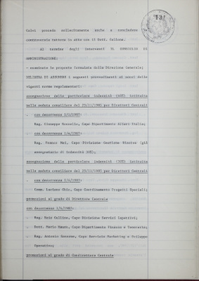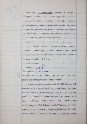 Verbali del Consiglio d'Amministrazione - Sedute segrete