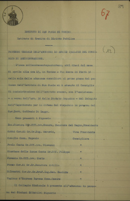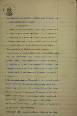 Verbali del Consiglio d'Amministrazione delle Aziende di Beneficenza