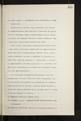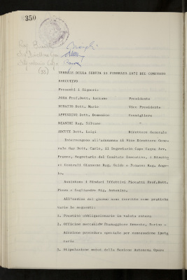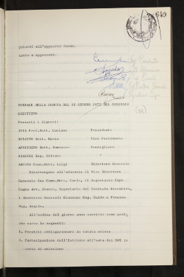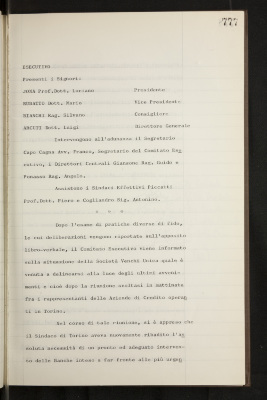 Verbali del Comitato esecutivo - Affari generali e riservati