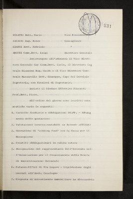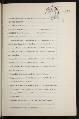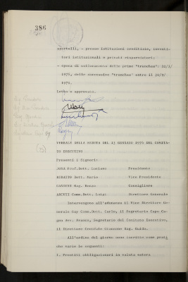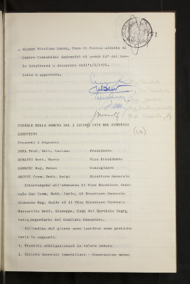Verbali del Comitato esecutivo - Affari generali e riservati