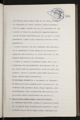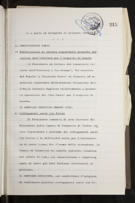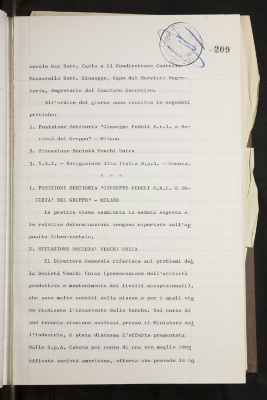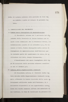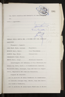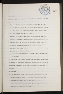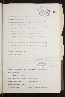 Verbali del Comitato esecutivo - Affari generali e riservati
