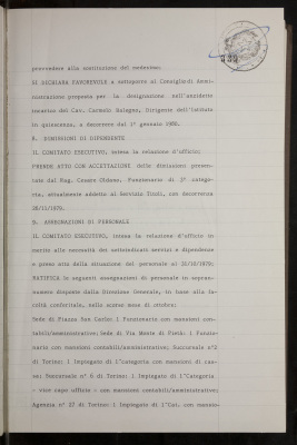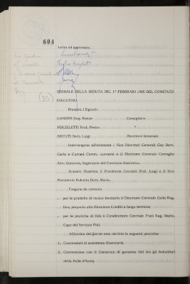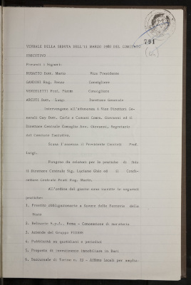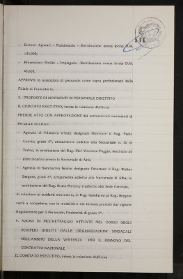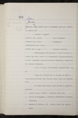Verbali del Comitato esecutivo - Affari generali e riservati