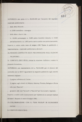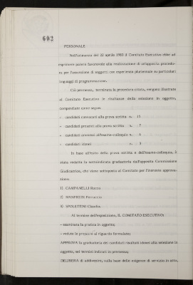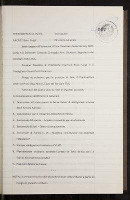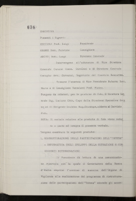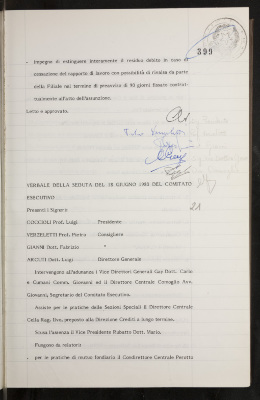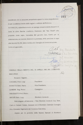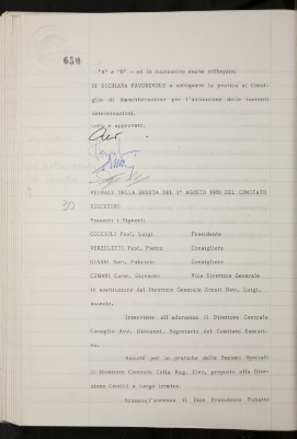 Verbali del Comitato esecutivo - Affari generali e riservati