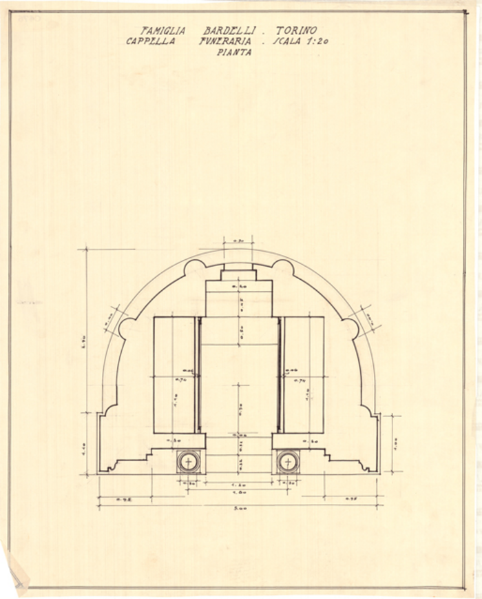 Progetto per la cappella funeraria della Famiglia Bardelli al cimitero Monumentale di Torino. Indicazione dei motivi decorativi e studio dei materiali.