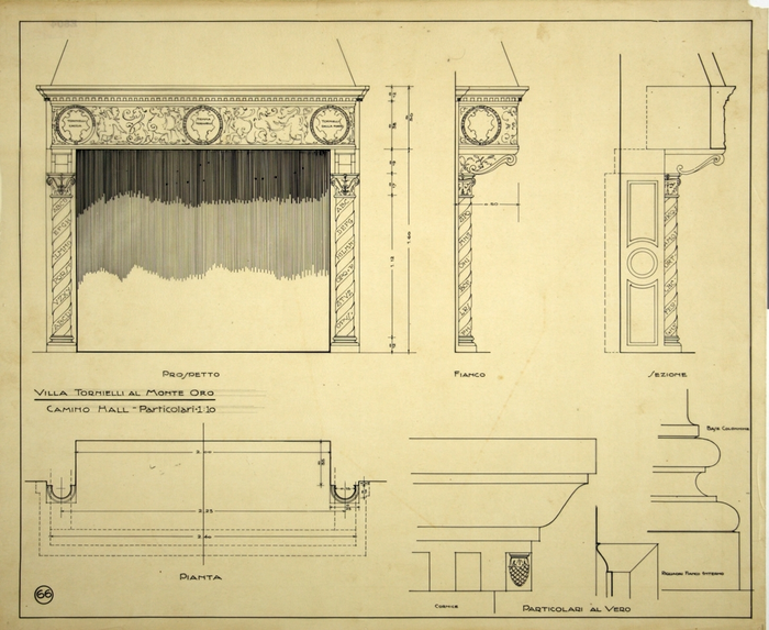 Progetto del rustico e del locale portineria di Villa Tornielli al Monte Oro (VB). Sono presenti disegni di progetto fino all'elemento decorativo e al particolare costruttivo.