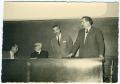 Sono riconoscibili da sinistra Felice Tomasi, Giulio Pastore, Carmelo Formica e Lauro Morra. Congressi; Lavoratori Informazione e Spettacolo; FEDERLIBRO-CISL, Federazione Italiana Lavoratori Libro Poligrafici e Cartai