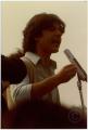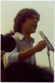 Un uomo al microfono, durante la manifestazione