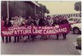 Manifestanti con striscione "Consiglio di fabbrica Manifattura Lane Carignano"