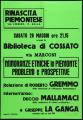 indic. di responsabilità RINASCITA/ PIEMONTESE/ VIA FERRERO, 17 - BIELLA titolazione SABATO 26 MAGGIO ore 21,15/ presso la/ Biblioteca di COSSATO ... MINORANZE ETNICHE in PIEMONTE/ PROBLEMI E PROSPETTIVE didascalica Relazione di ROBERTO GREMMO/ della redazione di "Rinascita Piemontese"/ Interverranno:/ DUCCIO MALLAMACI/ della redazione di "linea proletaria"/ e GIUSEPPE LA GANGA/ membro del cc del PSI/ seguirà il dibattito indic. di responsabilità Tip. EDI - Torino