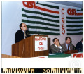 Sono riconoscibili seduti da destra Antonio Degiacomi, Gianfranco Zabaldano. Cuneo; CISL; Sindacato; UST, Unione Sindacale Territoriale; Degiacomi, Antonio; Zabaldano, Gianfranco